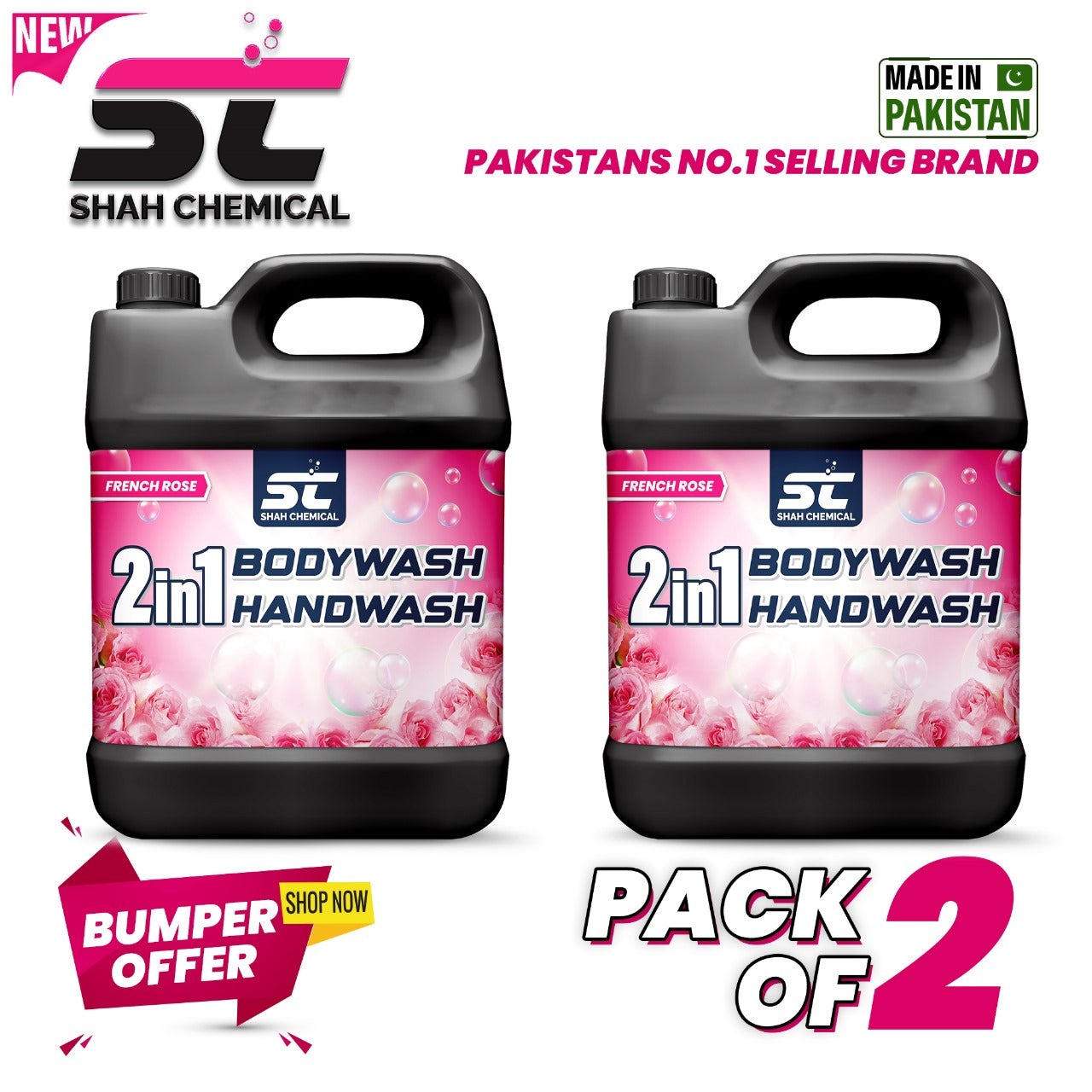 2 in 1 Bodywash And Handwash ( french rose ) Pack Of 2 - 4 Litre