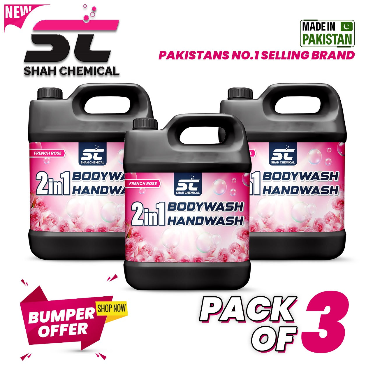 2 in 1 Bodywash And Handwash ( french rose ) Pack Of 3 - 4 Litre