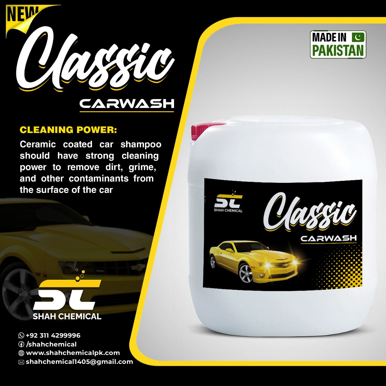 Classic Shine car wash & wax shampoo is a specialized car cleaning product that provides a deep clean and a protective wax layer for your car's paintwork. It has several features and benefits that make it a popular choice among car enthusiasts. These include: