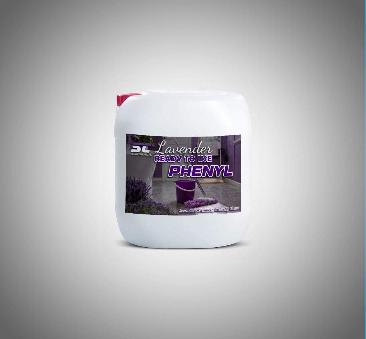 "Lavender Ready to Use Phenyl." Phenyl is a disinfectant commonly used for cleaning purposes, and the "ready to use" formulation suggests that it is pre-diluted and can be used directly without further mixing.