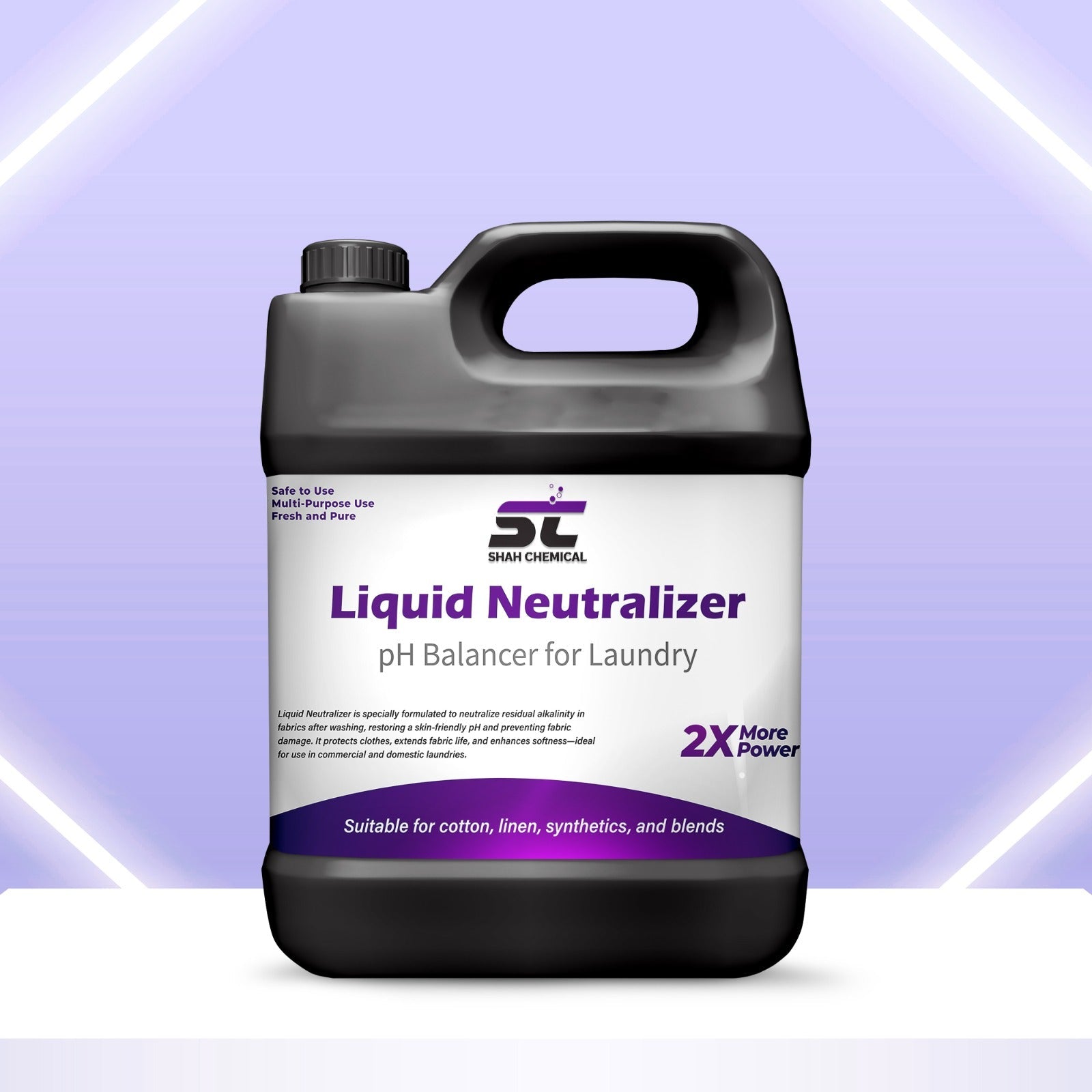 Our Liquid Neutralizer is a pH balancer designed to optimize laundry water pH, ensuring perfect cleaning and care for your clothes.