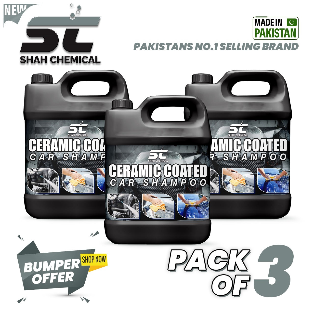 Pack of 3 Ceramic coated car wash and wax shampoo - 4 litre