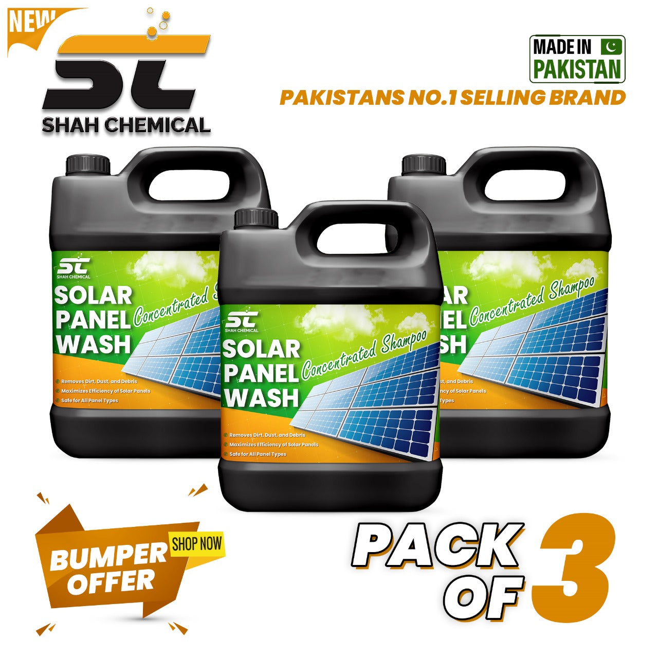 Pack Of 3 Solar Panel Wash ( Concentrated Shampoo ) - 4 litre