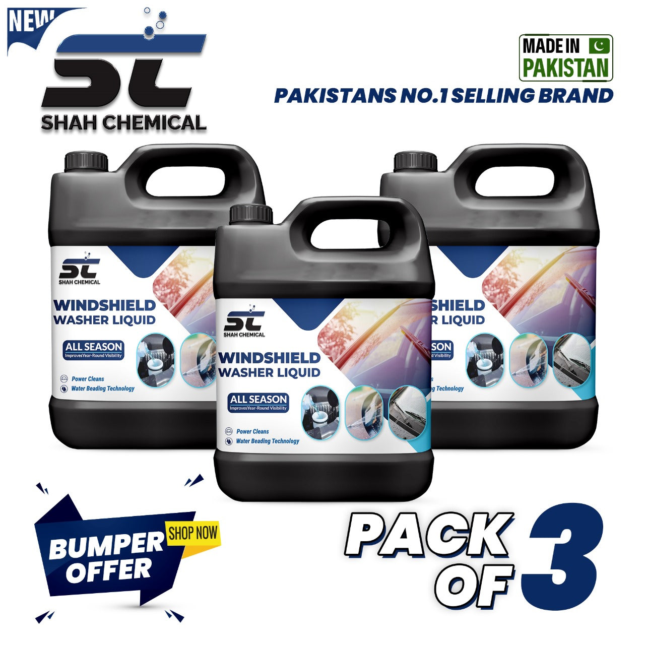 Pack of 3 Vehicle WindSheild Washer Fluid - 4 litre