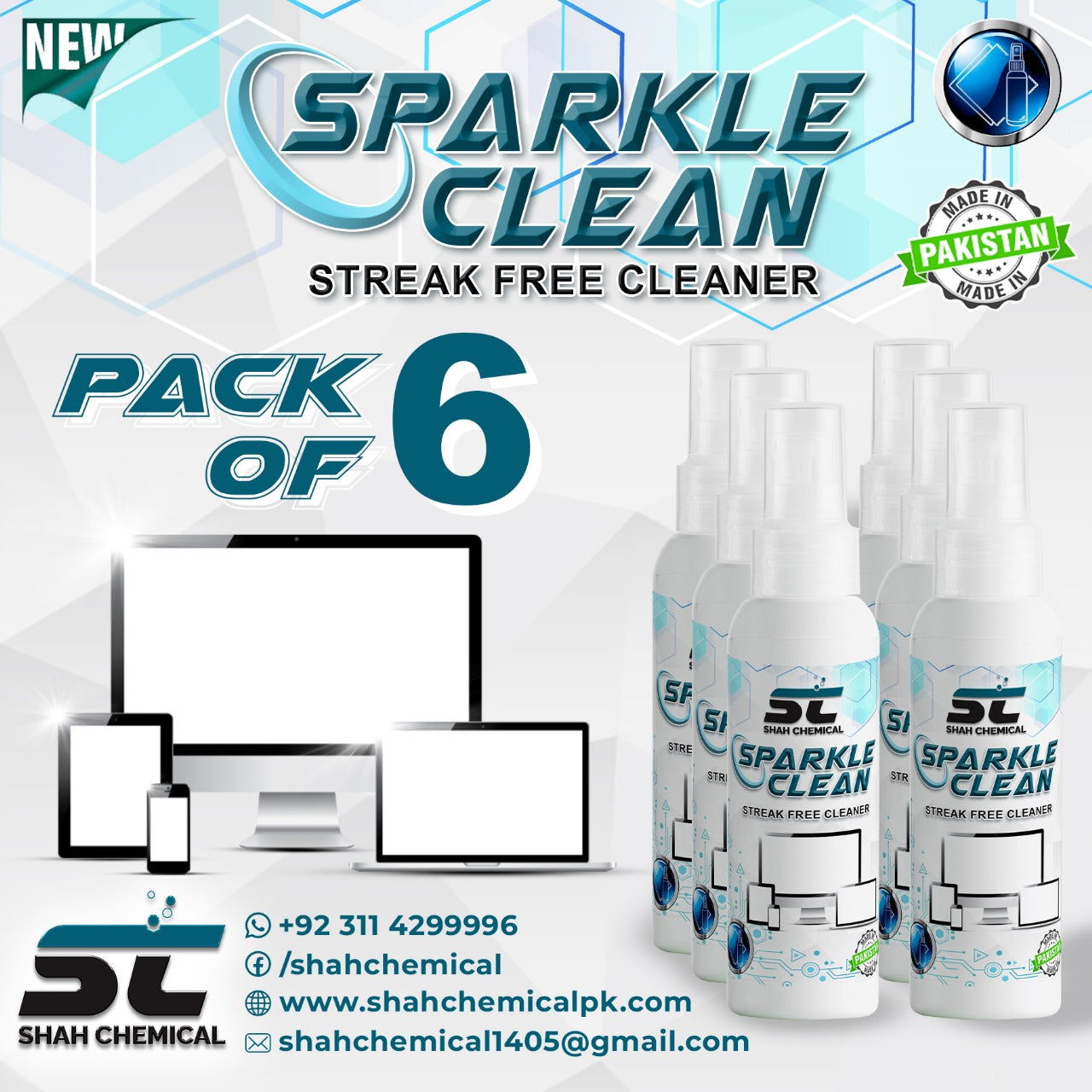 Experience a new level of clarity with SHAH CHEMICAL's Sparkle Clean, a versatile cleaner designed to leave your glass, laptop screens, LEDs, glasses, and mobile screens spotless and crystal clear!